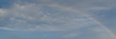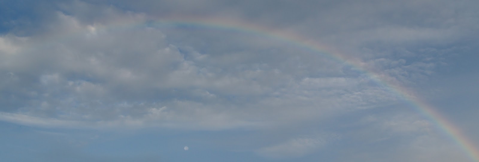 The rainbow was 180 degrees; and the moon was directly under the rainbow arc. Pausing...beautiful...blessing.