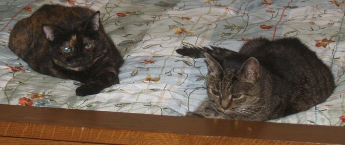 Kitty Karen and Callie BooBoo are close buddies. Karen is like a mom, and a friend, to Callie. Recently Kitty Karen wandered away after getting out of the house in some mysterious way. We searched the neighborhood multiple times in multiple days. Andy and Barbie ended the search when their cat spotted Kitty Karen in their backyard. Andy and Barbie, food in hand, attempted to get Karen. Skipper and I came along and spotted all the action, jumped in to help, and soon I had Kitty Karen tucked within my arms and Andy was walking Skipper to our home. Despite kidney disease and glaucoma and melanoma of her right eye, Karen was in great shape. Thanks so much, Andy and Barbie, and your precious kitty.